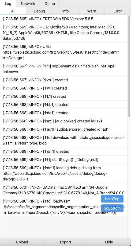 let trtc = TRTC.create({ plugins: [Debug] });