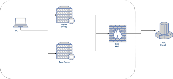 | 方案二 | 允许网页通过内网代理服务器访问外网 | 代理服务器搭建在内网,内网防火墙需开通白名单允许代理服务器访问 TRTC 服务器。 |